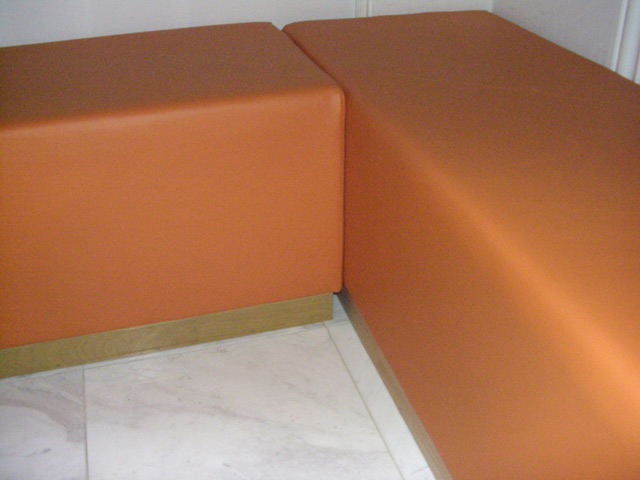店舗で壁に沿ってソファを設置する場合、壁に曲面があったり