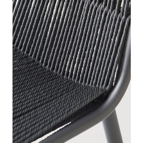 軽量アルミフレームにロープデザインを組み合わせた屋外対応チェアシリーズ。水や汚れに強いクッション付きで、カフェやテラス空間に最適です。