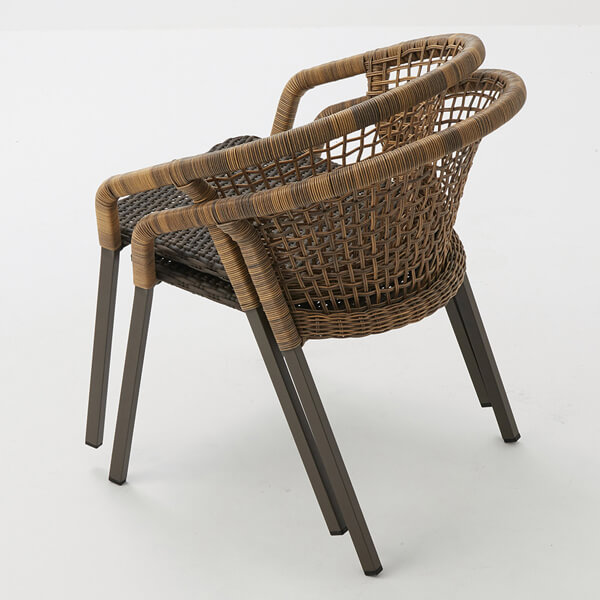 背・肘部ポリエチレン樹脂ウィッカー編み・ダーティーナチュラル