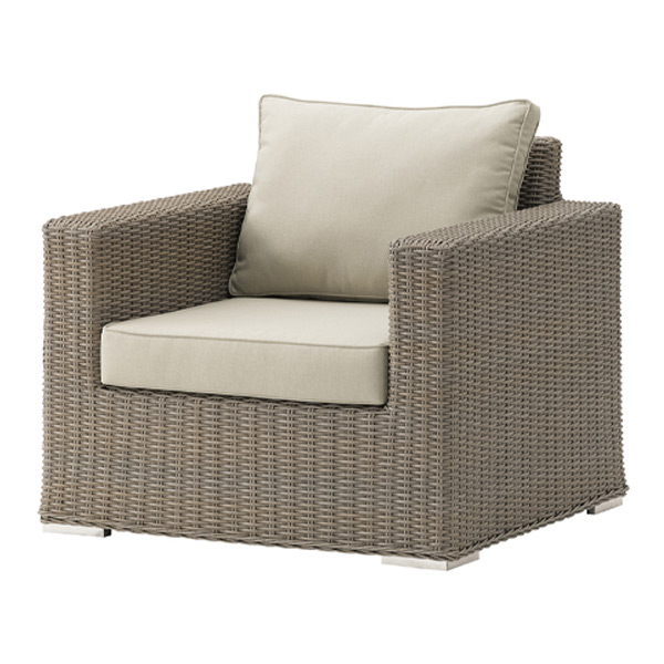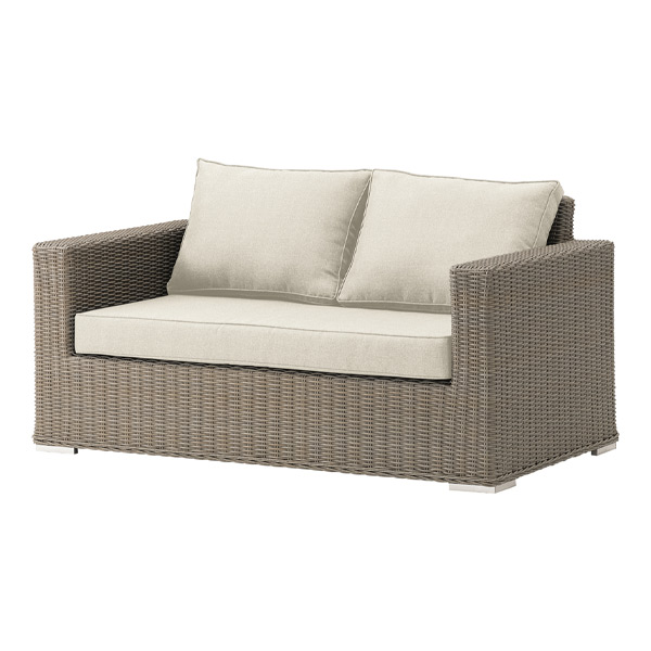 リゾート感あふれるコンパクトなアウトドアソファ。 リラックス空間から飲食スペースまで幅広いシーンに使えます。