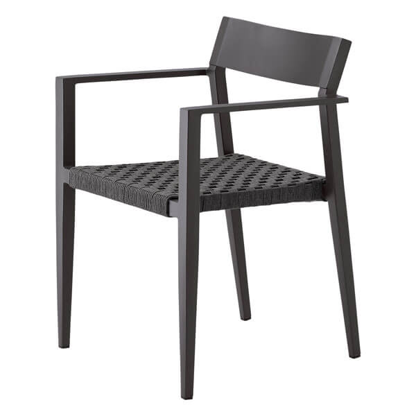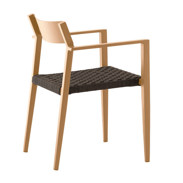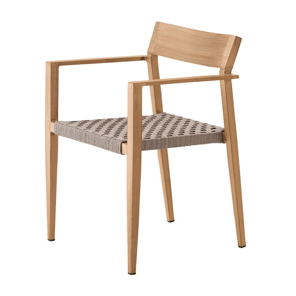 ベーシックなフォルムのアウトドアチェア。木目塗装は木の温もりを感じる空間にも、自然に溶け込みます。肘付タイプと肘無タイプから選べます。