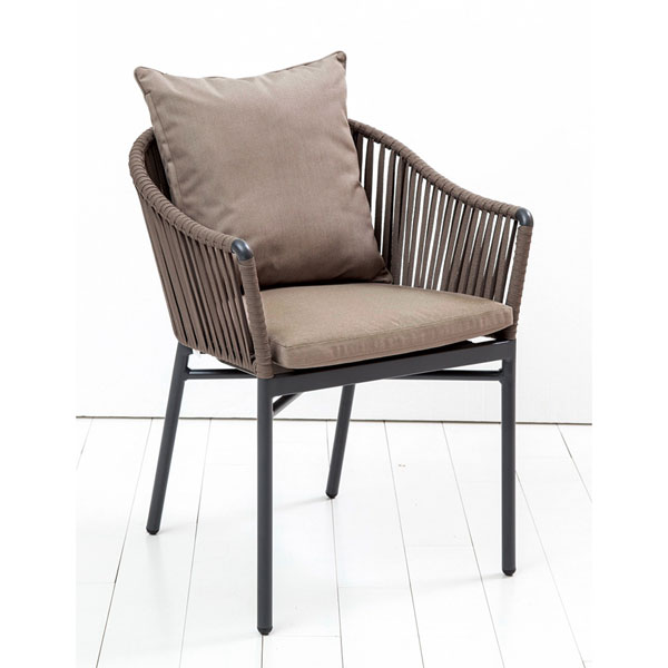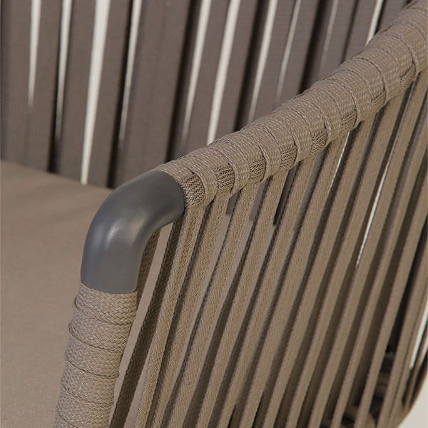 背もたれのロープは耐候性のあるPVC製。屋外でも安心してご使用いただけます。