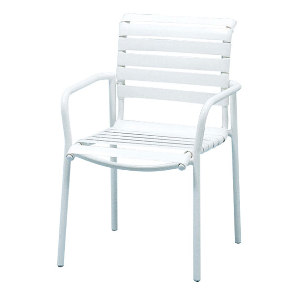 ニチエスが企画するシエスタラインは、アルミ製のフレームに軟質塩化ビニールを張ったオリジナルラインです。アルミの素材特性を生かし、軽量で積み重さね、折り畳みが出来る仕様になっています