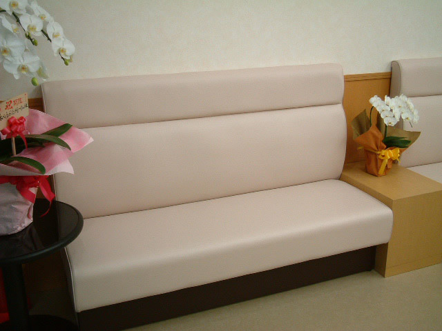 背厚140mm・座厚150mmの標準的なモジュール。背裏まで仕上げてありますので壁面以外でも使用できます。