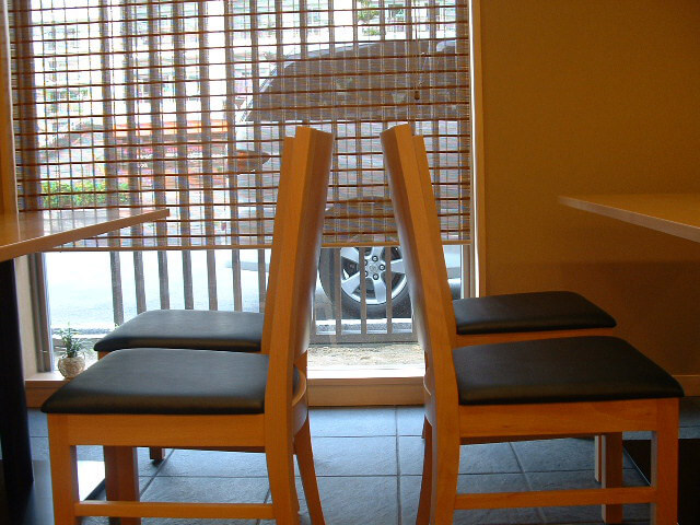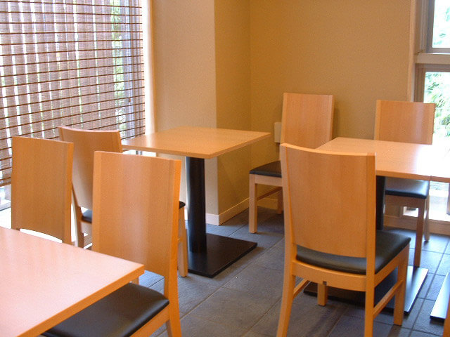 木製の椅子とテーブルで落ち着いた雰囲気の店内です。