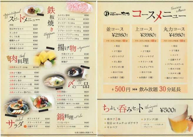 A ■ランチ:マルリキのオリジナルランチメニューで焼肉屋ならではの牛肉を使ったランチを展開しています。定番の焼肉定食はもちろんのこと、肉吸いや牛ひつまぶし、かすうどん、メンチカツ、ヒレカツ、コロッケなどの洋食メニューを取り揃えています。