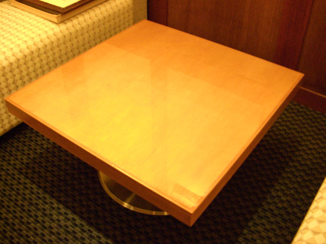 テーブルも特注でメイプルのツキ板にピアノ塗装というウレタン塗装をしました。