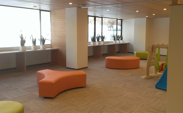 ビーンズとテトラの可愛らしい形が開放的なキッズルームにとても合っています。