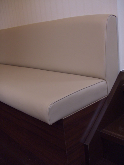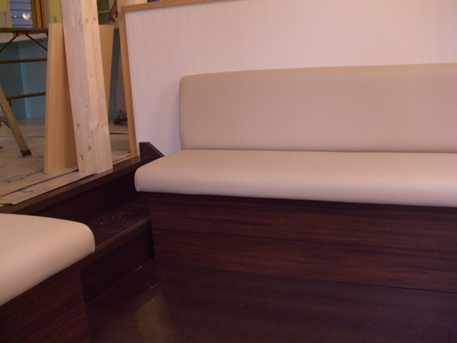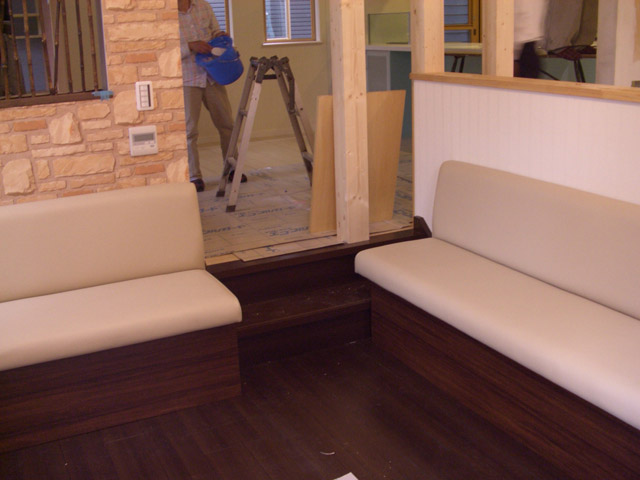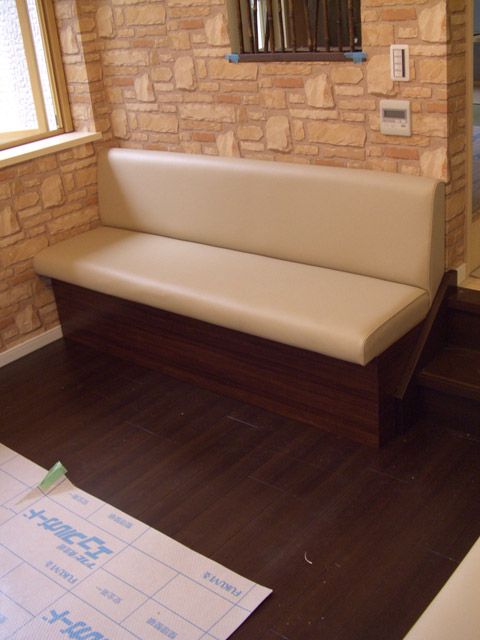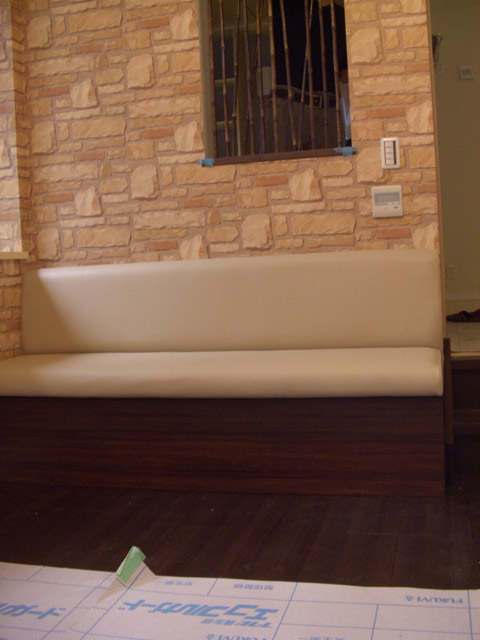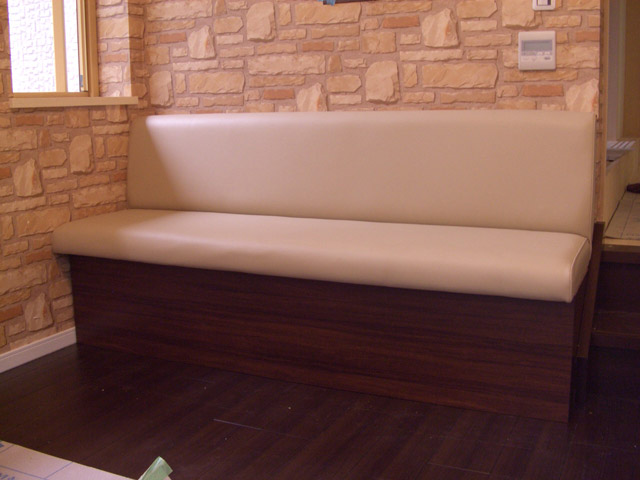 ソファ下部はメラミンで製作し、上部をオールマイティのレザーで製作しました。