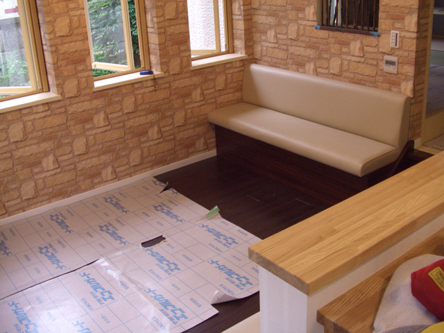 新築時に、住宅メーカーからの受注でリビング用のソファをオーダー製作しました。こちらのお客様は硬いソファがほしいとの事で寸法と形を業務用ソファのバンタイプでオーダーしました。