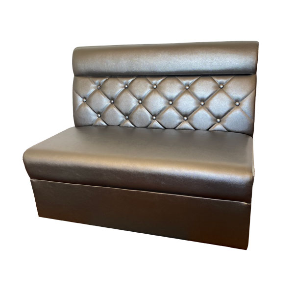 メタリックな光沢のあるレザー張地で、高級感のあるミシンキルトボタン仕上げソファです。ブラック・シルバー・ゴールドの3色からお選びいただけます。