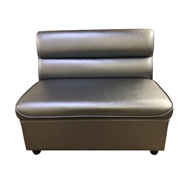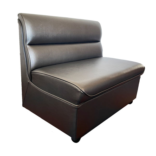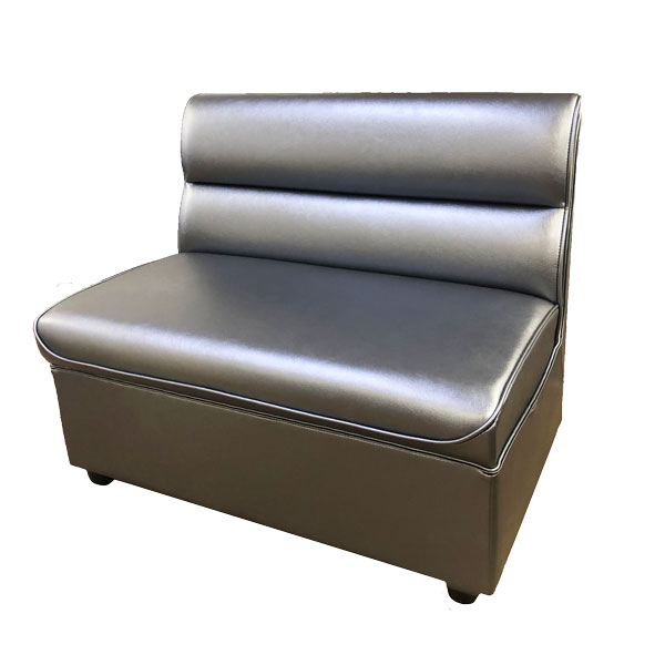 メタリックな光沢のあるレザー張地で、高級感のあるクラブ・ラウンジに映えるをボックスソファです。ブラック・シルバー・ゴールドの3色からお選びいただけます。