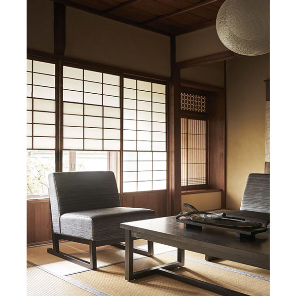 アッシュ材を用いた、和モダンな表情を見せるソファ。寛ぎを求める空間におすすめです。