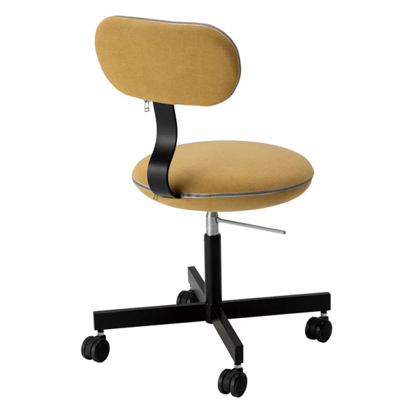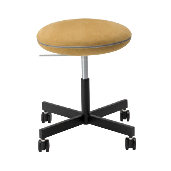 お菓子のマカロンのように可愛らしいふっくらとしたフォルムのワークチェア。昇降機能付で座面の高さ調整が可能です。脚部の色はシルバーと黒からお選びいただけます。