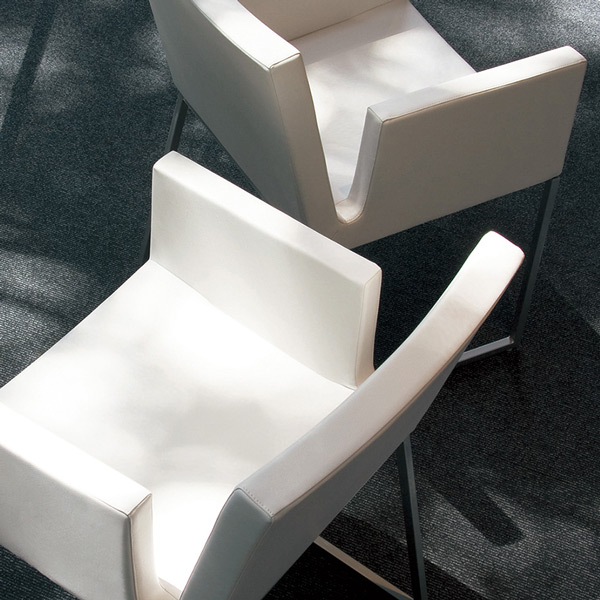 モールドウレタンフォームによる一体成型のシート。エッジのきいたシャープなフォルムがスタイリッシュな空間に似合います。