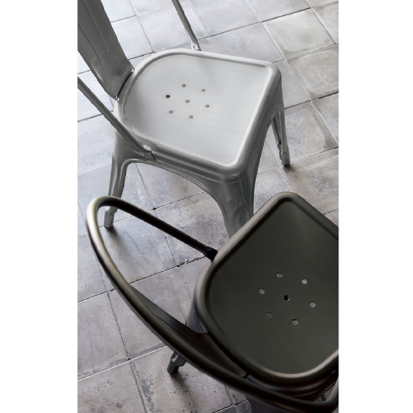 インダストリアルな質感。オールメタルのプレス加工による独特なフォルムのチェアです。