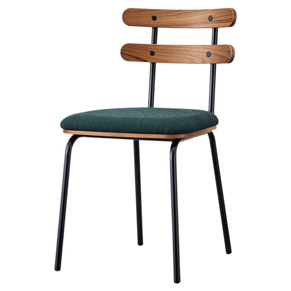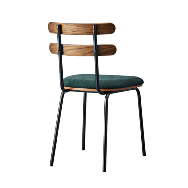 木材の質感を楽しむ、木金混合チェア。豊かな木目の表情とその形状により、賑やかで温かみのある空間を演出します。
