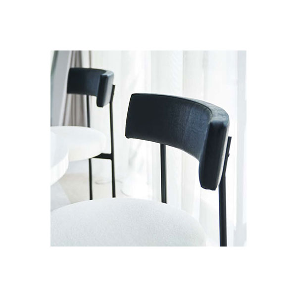 大きくラウンドした背もたれによる、快適な座り心地と上質感。洗練された空間にさらなる品格を与えます。
