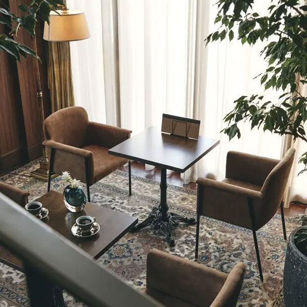 ゆったりとしたボリューム感が魅力のアームチェア。サロンや飲食スペースなど、様々な空間に寛ぎを届けます。