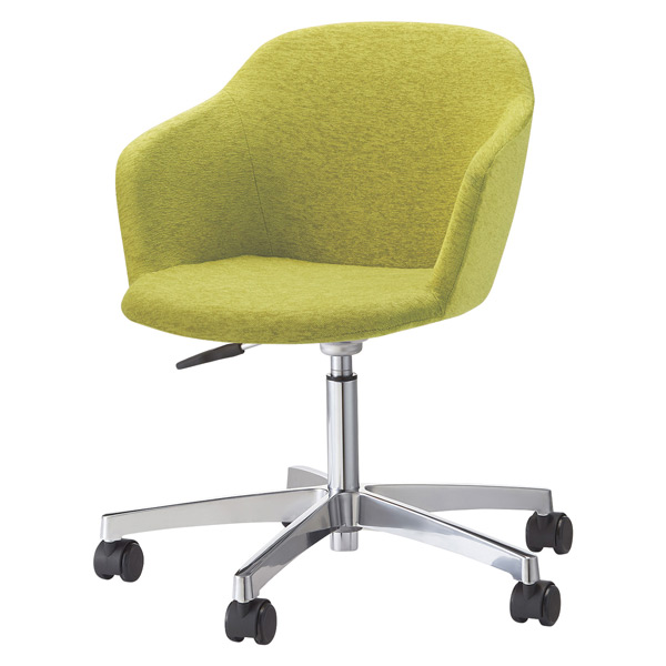 ふくらみを持たせたフレンドリーなデザインの肘付きチェア。ガス圧昇降、回転式のオフィス・店舗用スチールチェアです。