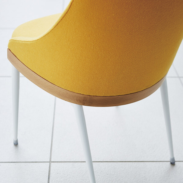 統一性のある3つのデザインを持つチェアのスチール脚タイプ。背を包み込む軟質モールド成型が魅力。上質な空間にも映える、前後左右どこから見ても美しい佇まいを追求したデザインです。