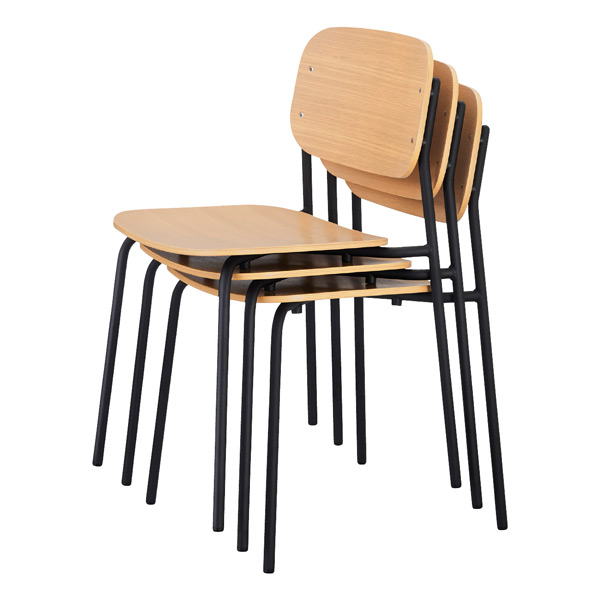 ポプラは、合板と曲げパイプが織りなす曲線と直線バランスの美しさに、機能性が融合したシンプルチェア。細部にまでこだわり、どこから見ても一体感のあるデザインに仕上げました。