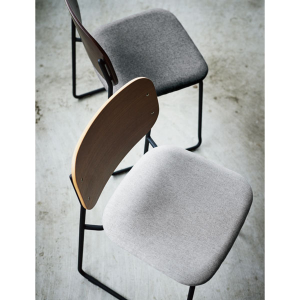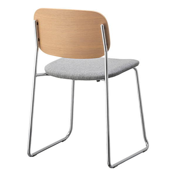 合板と曲げパイプが織りなす曲線と直線バランスの美しさに、機能性が融合したシンプルチェア。細部にまでこだわり、どこから見ても一体感のあるデザインに仕上げました。
