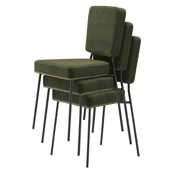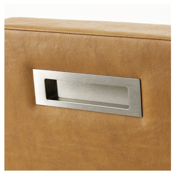 背面には取手があり、スタッキングもできる実用的な一脚です。厚手シートでソフトなクッション性も魅力です。鋲付タイプもあります。