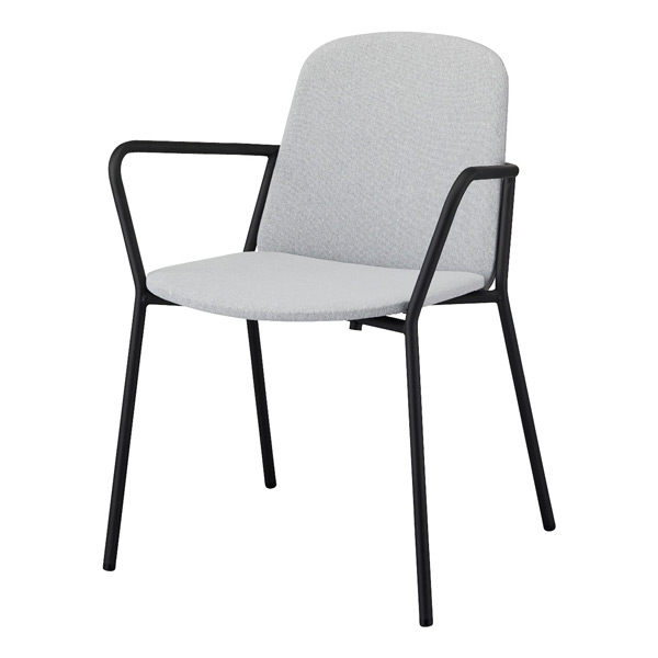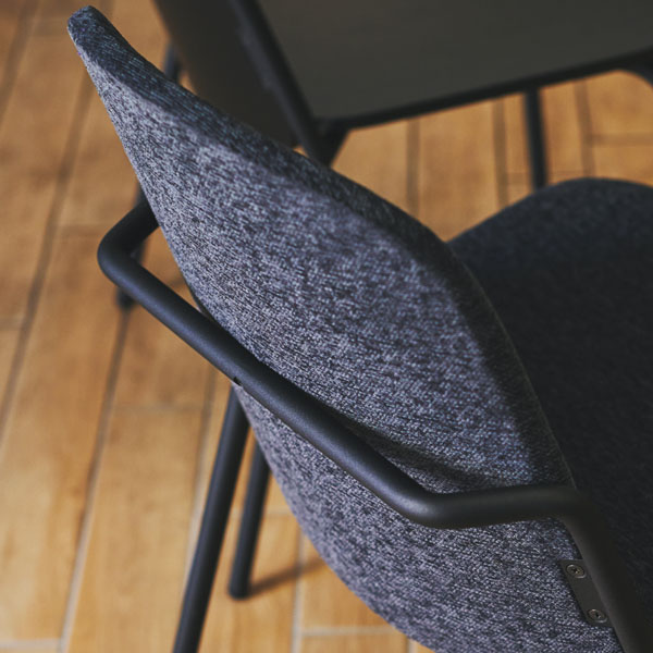 スチール家具らしい硬質で直線的なフレームと、柔らかで曲線的な面が織りなすコントラストが効いたデザイン。高級感を感じさせながら、カジュアルさも同時に感じさせてくれ、必要以上に堅苦しくない心地よさを作り出します。