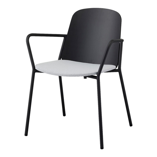 スチールの直線的と曲線のコントラストが効いたデザイン。主張しすぎないデザインでありながら、木目のナチュラルな印象が空間コンセプトを引き立て、部屋全体を引き締めてくれます。