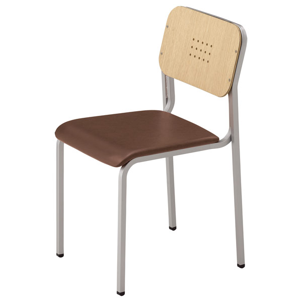 懐かしさを感じるスクールチェアをモチーフにしたデザイン。しっかり座れる安心感と基本に忠実な機能を兼ね備えています。プライウッドと張座の2タイプあります。