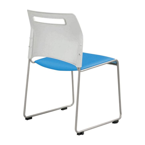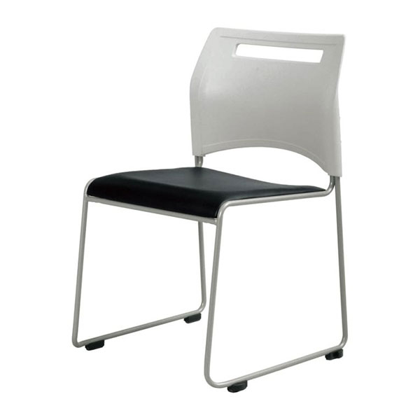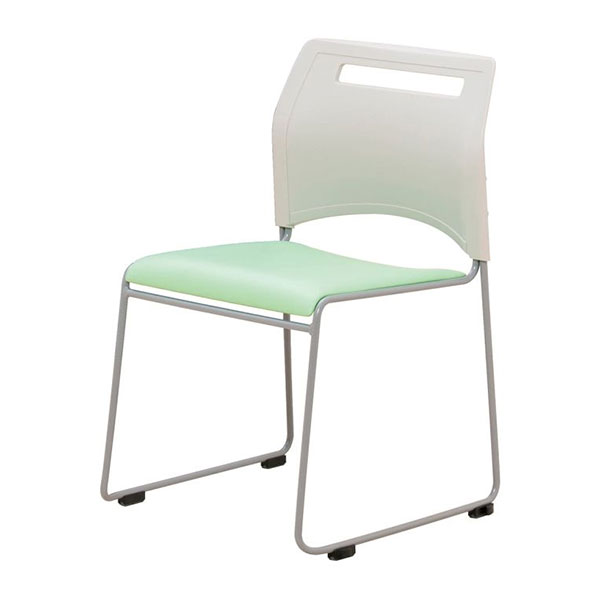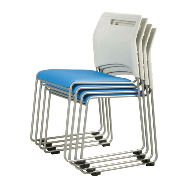 フードコートやカフェ、食堂、ミーティングルームにご使用いただける、そり脚タイプののスチールチェア。4脚までスタッキング可能です。