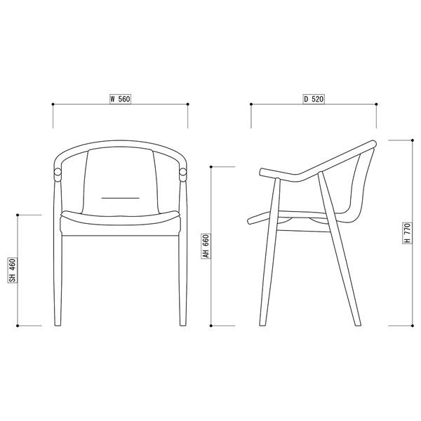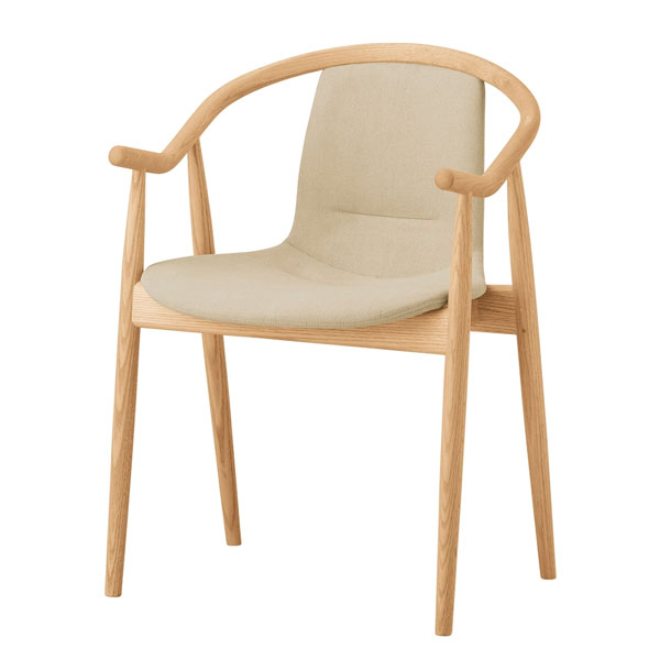 優雅なアームフレームがカフェレストラン空間に寛ぎと癒しを提供します。背もたれの限定張地カラーは店内インテリアに合わせてお選びください。