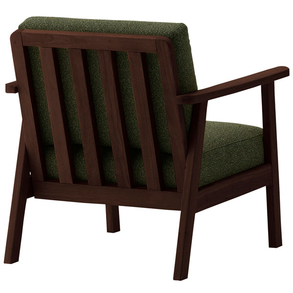背面が縦桟フレームの木製チェア。座面高さと奥行きは使用シーンに合わせリラックス・ワークの2タイプから選べます。こちらの商品は、座面の高さが390mmのリラックスタイプです。