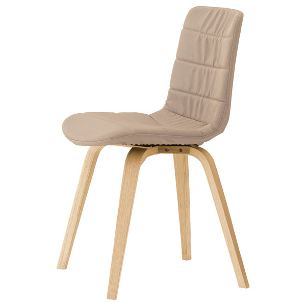 クナBは、ルーズなカバーリング仕上。樹脂のシェルにクッション材と張地を被せ、ギャザーを入れたルーズ張り仕上げが柔らかな表情です。