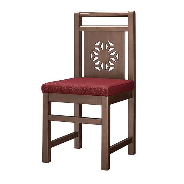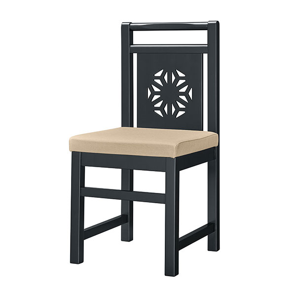 背板のデザインが印象的な和風椅子です。持ち手が付いて移動も楽に行えます。同タイプのカウンターチェアもあります。
