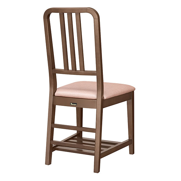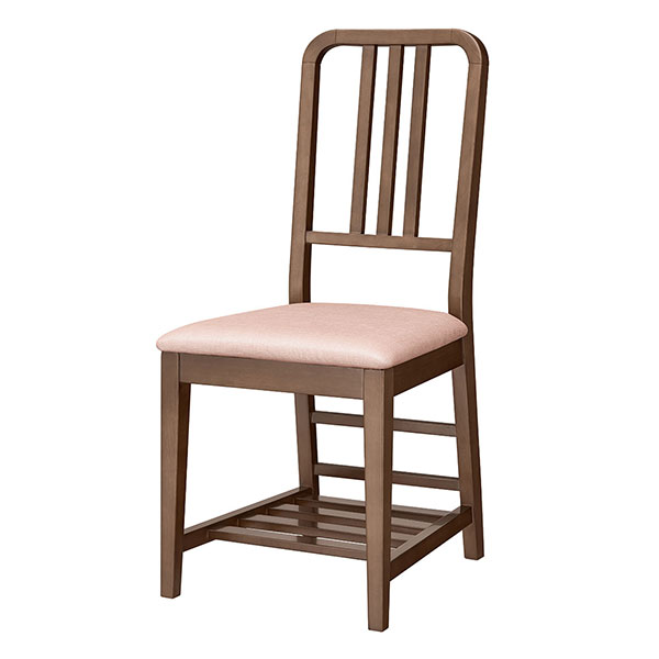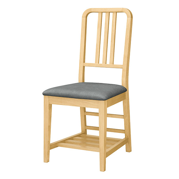 棚付木製椅子です。背の高いフレームは丸みのおかげで空間を圧迫することなく馴染みます。