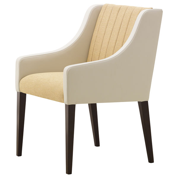 柔かなキルティング加工のバックレストが落ち着いた雰囲気で、張地のコンビネーションによりクラシカルにもエレガントにも、多彩な表情にアレンジできます。
