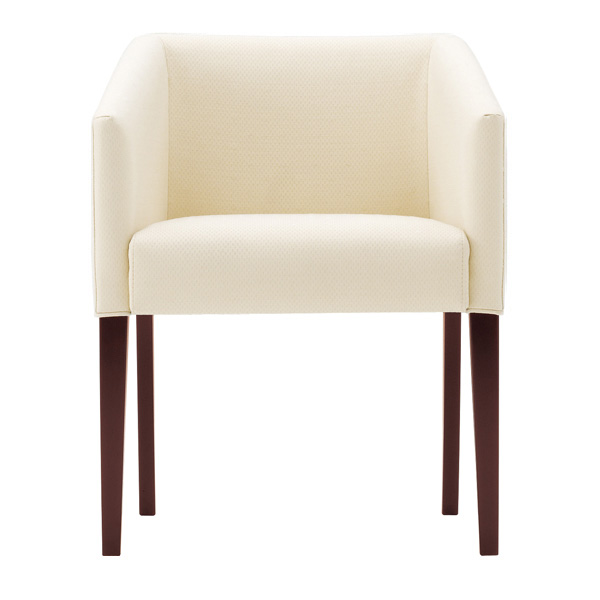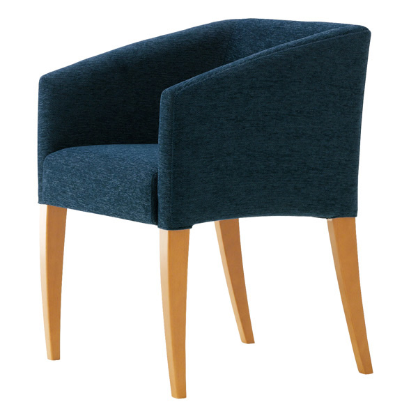 落ち着きのあるコンパクトなラウンジスタイル。ダイニングでもラウンジでも使えるサイズ感です。張肘タイプで1人掛け、2人掛けとあります。