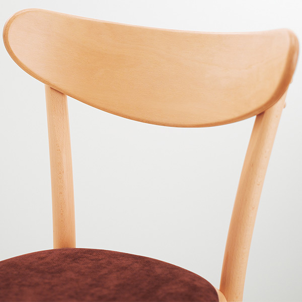 背もたれの形にちなんでバナナチェアとして親しまれているデザイン。コンパクトながら背中を優しく支える優雅な掛け心地です。プライウッド(板座)タイプと張座タイプがあります。