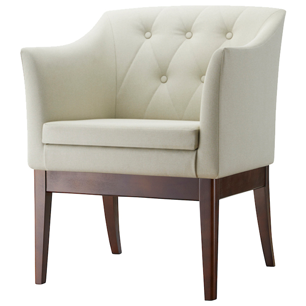 キルティングとボタンにより、装飾性を高めたパーソナルチェア。ラグジュアリーな空間にマッチします。