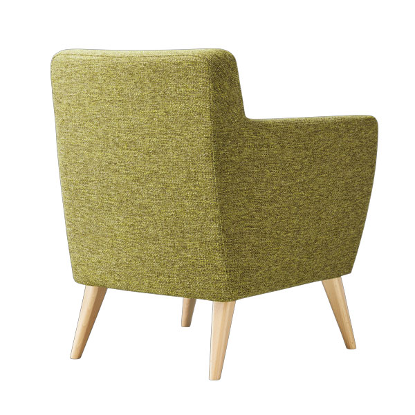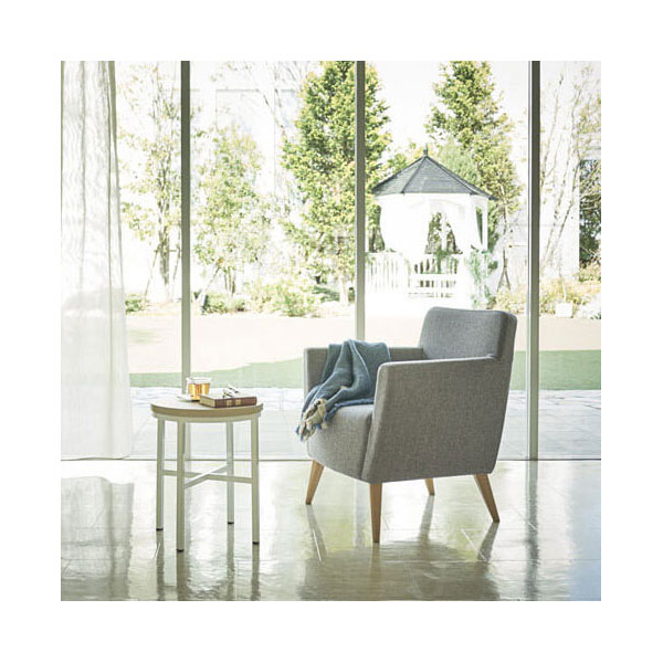丸みを帯びる優しいデザインと安定感のある座り心地。カフェやサロンスペースなど、寛ぎを求める空間に適します。