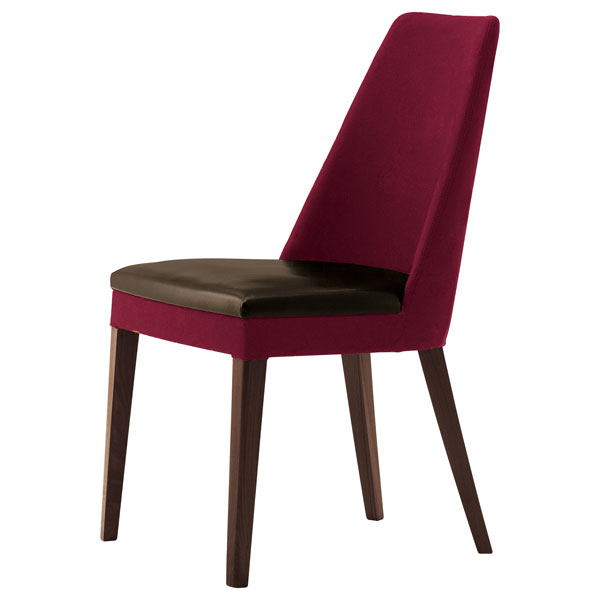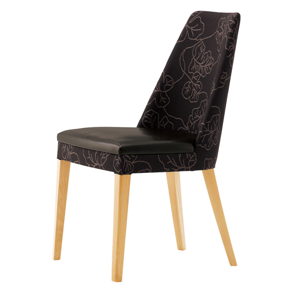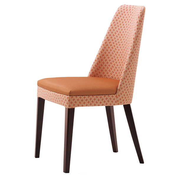 あらゆるシーンに幅広く対応する背張りぐるみチェア。バックレストの優雅なラインが印象的です。