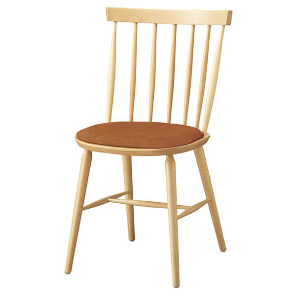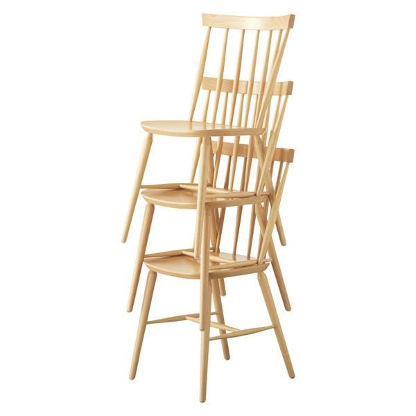 人気のウィンザーチェアにスタッキングができるタイプを採用。小振りながらもしっかりとした座り心地です。座面は、板座タイプと張り座タイプからお選びいただけます。