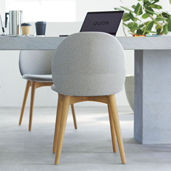 丸みを帯びた背もたれとナチュラルな木脚が特徴のチェア。軟質モールドウレタンによる有機的なフォルムが身体を包み込み、心地よい安らぎを提供します。