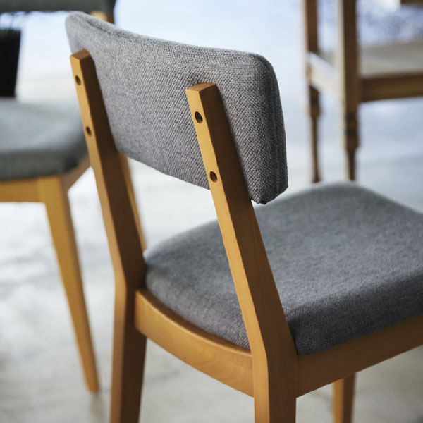 軽快で扱いやすいカジュアルチェア。掛け心地のよい曲面シートは意匠の幅が広がるソフト張り仕上げです。