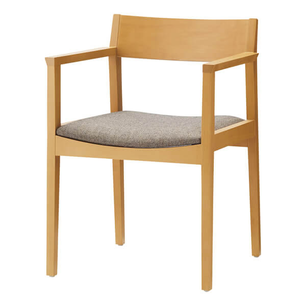天然木のぬくもりと優しさを表現した背板モデル。和洋いずれの演出にも対応します。肘掛け無しタイプ・肘掛け有りタイプを選べます。