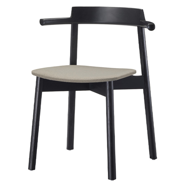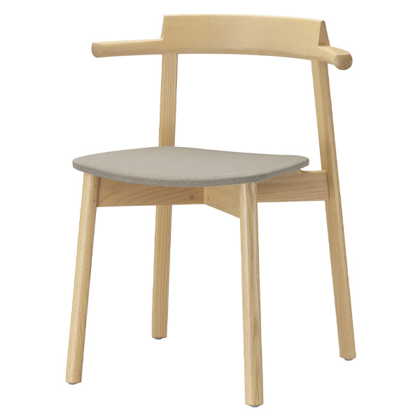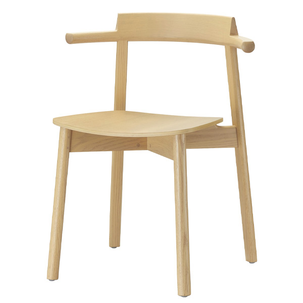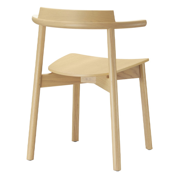 背からショートアームに繋がる木材は曲げ木を利用。背あたりのよい曲面に仕上げ、程よいサイズのアームが肘をしっかりサポートするように設計されています。