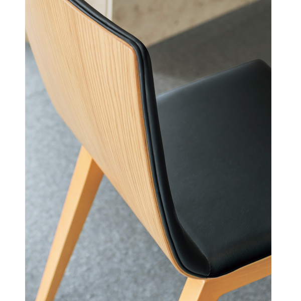本体と脚の異なる素材の組み合わせが空間に豊かな表情をあたえます。成型合板の適度なベンディングにより快適な掛け心地です。