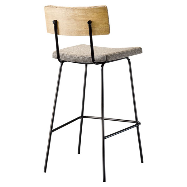 背面のメラミン化粧板が印象的なスチールチェア。店内インテリアに合わせてカラーを選べます。